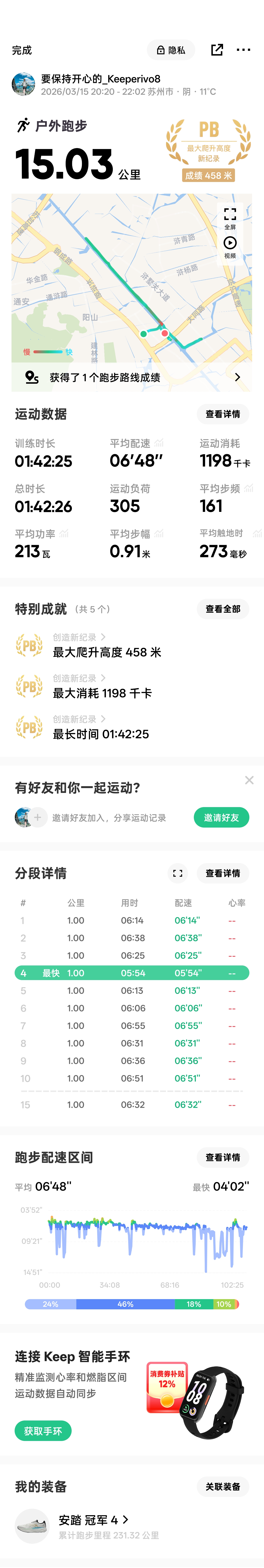 第一次跑完15km,菜是菜了点,好在跑完了